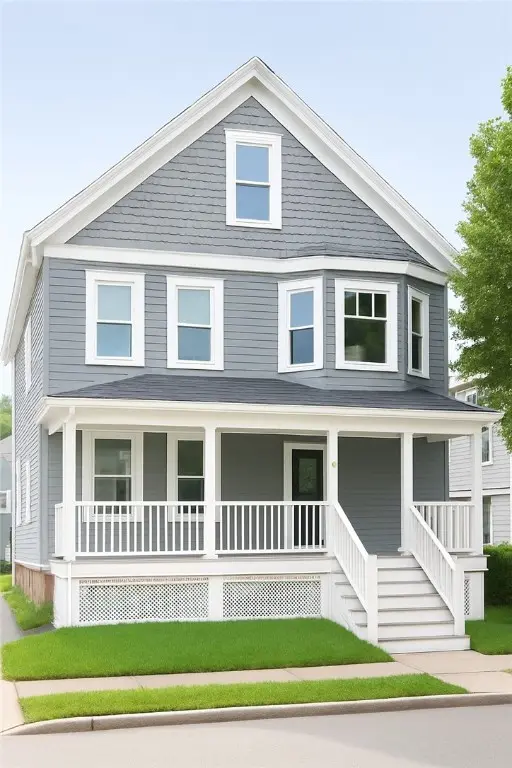 Renovated 4-bedroom, 2.5-bath Colonial in a prime Newport location, walkable to shops, dining, and downtown attractions. The first floor features a grand foyer, open-concept living and dining areas, an eat-in kitchen, and a renovated half bath. The second floor offers three large bedrooms, a full bath, and a laundry room. The third floor includes an additional bedroom with a private full bath. Highlights include a newly constructed farmer's porch, fenced backyard with deck, hardwood floors throughout, two off-street parking spaces, and ample storage. Rent includes water, sewer, trash removal, and parking. Pets considered. Photo furnishings staged.